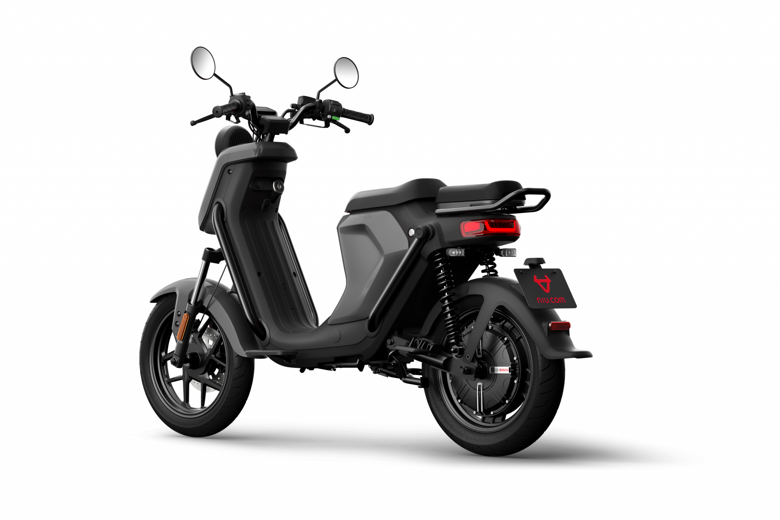 INTELLIGENTER ANTRIEB Der leistungsstarke NIU-Selbstadaptionsmotor bietet kraftvolle Beschleunigung. Das EBS-System speist beim Bremsen Energie zurück und steigert so die Reichweite und Akkulaufzeit.